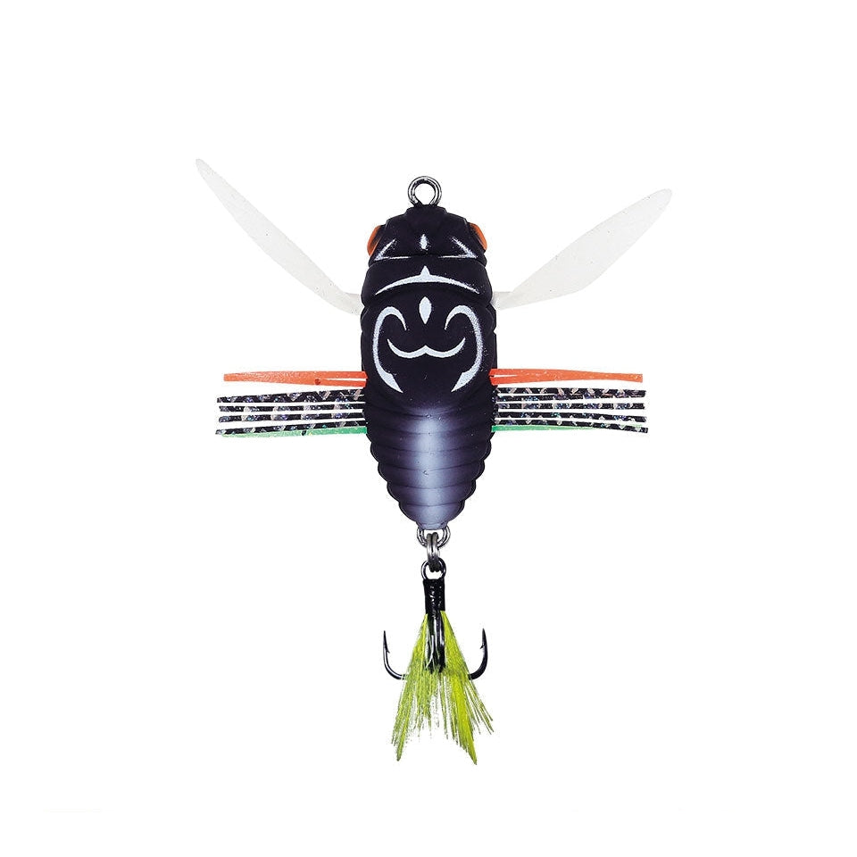 Insektenimitationen und insbesondere Imitationen von Zikaden sind äußerst effektive Köder. In Japan stellen sie eine häufige Beute der Schwarzbarsche dar, in unseren Breiten sind sie oft ein Geheimtipp von passionierten Döbel-Anglern. Dies liegt natürlich zum Einen an der genauen Kopie des natürlichen Vorbildes hinsichtlich Form und Größe.