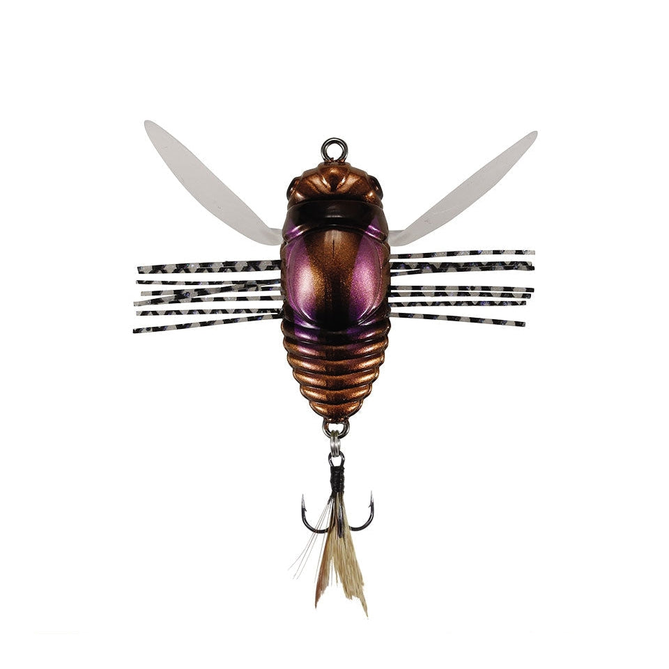 Insektenimitationen und insbesondere Imitationen von Zikaden sind äußerst effektive Köder. In Japan stellen sie eine häufige Beute der Schwarzbarsche dar, in unseren Breiten sind sie oft ein Geheimtipp von passionierten Döbel-Anglern. Dies liegt natürlich zum Einen an der genauen Kopie des natürlichen Vorbildes hinsichtlich Form und Größe.