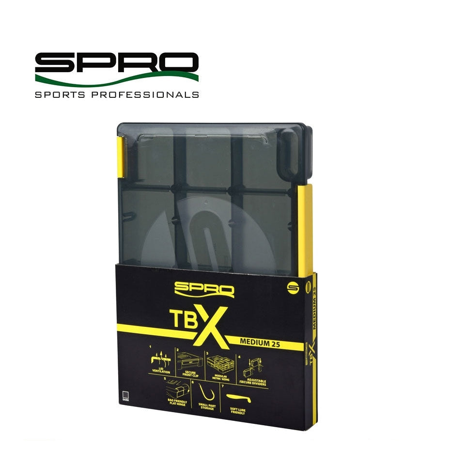 TBX-Boxen wurden von SPRO komplett speziell für das Kunstköderangeln entwickelt. Die Boxen sind alle mit metrischen Außenmaßen in einem modularen Größenmuster hergestellt, was bedeutet, dass sie gestapelt und einheitlich in einer Tasche platziert werden können. TBX-Boxen sind mit einem völlig einzigartigen flachen Scharniersystem ausgestattet, was bedeutet, dass jede Seite der Box flach ist. Dies ist eine großartige Funktion, da es das Verstauen der Boxen in Tackle-Taschen viel einfacher macht. Jede Box hat ein einzelnes breites Scharnier, das mit einer Hand bedient werden kann. Ein weiterer einzigartiger Aspekt der TBX-Boxen sind die Kleinteilebereiche. Wo bei normalen Gerätekästen die Kanten verschwendeter Platz sind, haben unsere Designer die Gelegenheit genutzt, den Platz zu nutzen, indem sie flache Fächer für Endgeräte und andere Kleinteile hinzugefügt haben. Es ist sogar ein TBX-Tray erhältlich, das mit den meisten Boxen kompatibel ist.