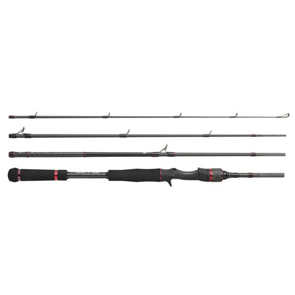 Die 4-teilige Bass Force Special Travel Cast besticht durch eine sportlich elegante Ästhetik und ist auf phänomenalen Komponenten aufgebaut. Mit einer Länge von 1,80 bzw 2,23 m ist das Modell für das mitllere bis schwere Baitcaster-Angeln auf exotische Raubfische optimal geeignet. Sie passt aufgrund ihres geringen Transportmaßes in nahezu jeden Koffer. Der hochentwickelte NET-V III Carbon Blank, gepaart mit dem exklusiven Fuji Alconite-Ringsatz, ist speziell für das aktive Baitcastfischen auf Bass und Co. konzipiert. Der Blank arbeitet äußerst schnell und ist höchstsensibel, um die Kopfschläge exotischer Raubfische meisterhaft abzufedern. Mit der Bass Force Special Travel Cast werfen Sie die verschiedensten Kunstköder, wie Twitchbaits, Spinner, Wurmimitate am Finesse-Rig und Jiggs, zielsicher an Ihren Hotspot und präsentieren diese spielend leicht. Die Wurfweite ist genial. Die Bass Force Special Travel Cast lässt sich bequem vom Ufer- als auch vom Boot fischen und bringt genügend Kraftreserven mit, um auch größere Raubfische mühelos zu bändigen. Das Design der Rute ist sportlich elegant, mit rötlichen Applikationen versehen und unterstreicht die Hochwertigkeit der einzelnen Komponenten. Travelfischen der Extraklasse!