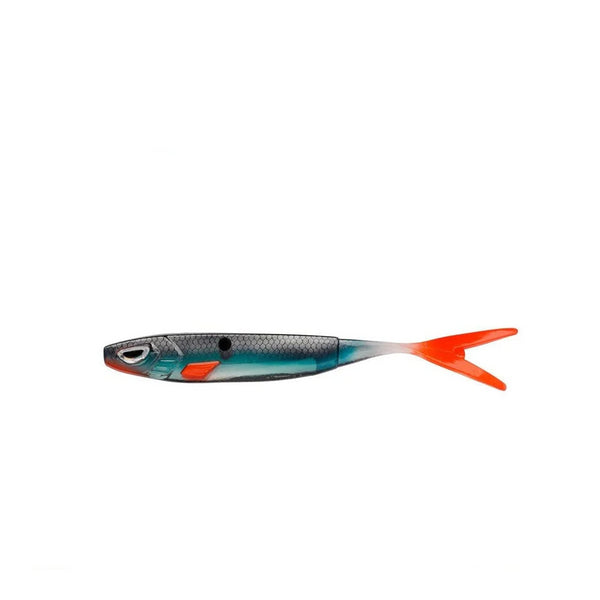 Der markante Körper in Kombination mit dem V-Tail erzeugt eine kräftige, flankende Aktion, die auch in tieferem oder trübem Wasser zuverlässig Reize setzt. Selbst bei langsamer Führung beginnt der Köder schon zu „leben“ – ideal beim Faulenzen oder Schleppen.