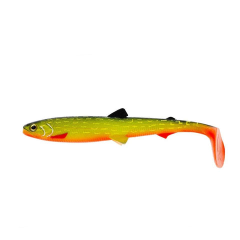 Im Gegensatz zum horizontal ausgerichteten Transfertail ist das V-Tail vertikal ausgerichtet und besteht aus einem weicheren Elastomer. Das V-Tail verleiht dem Tiny Klash nicht nur eine klassische Side to Side bewegung , sondern erzeugt auch eine höhere Wasserverdrängung und bewirkt, dass der Köder anders wackelt und rollt als Modus A oder Modus B.